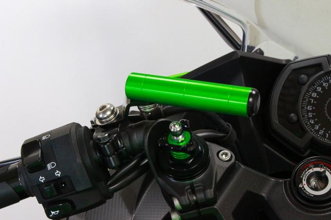 取り付けステーの角度を付けるようにしセパレートハンドル車にも綺麗に取り付けられます。