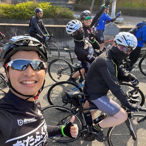 AM8:40、いよいよスタートです♪おたふくサイクルジャージを着て4人最後まで走りぬきたいと思います!