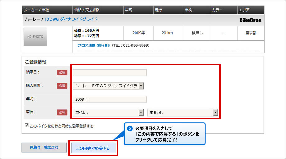 ●Myバイクサーチから応募